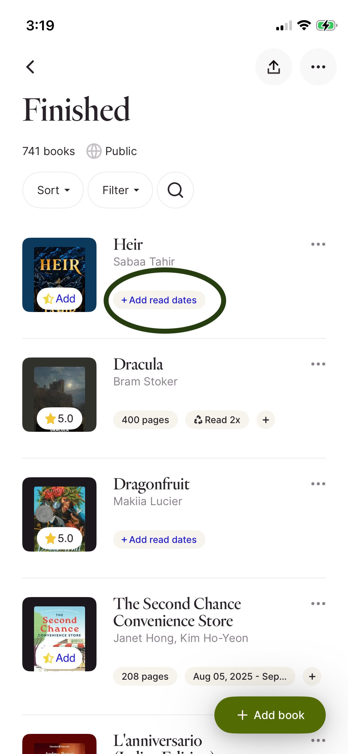 Please note, once you add a finished date, your yearly stats update immediately, while the all-time stats update after a few days.