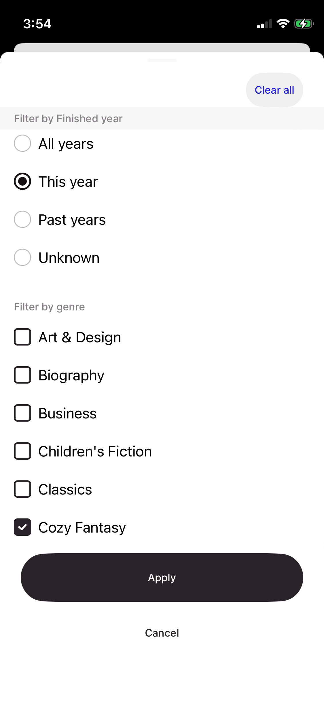 You can view which books are counted towards each genre by filtering your finished list by genre and year. If you believe any books are incorrectly noted, please let us know via our Fable Book Updates form.